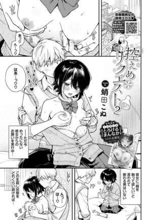 【今すぐマンガを読む】控えめリクエスト2の作品紹介|【漫画フル】【彼女のえっちでかわいい『お願い』に悶える青春ラブ♪】人気絶頂の群青エロス作家・蛸田こぬが贈る内気彼女とのトロトロH続編!ちょっと内気で控えめな鈴とつきあっている進藤。ある日、...